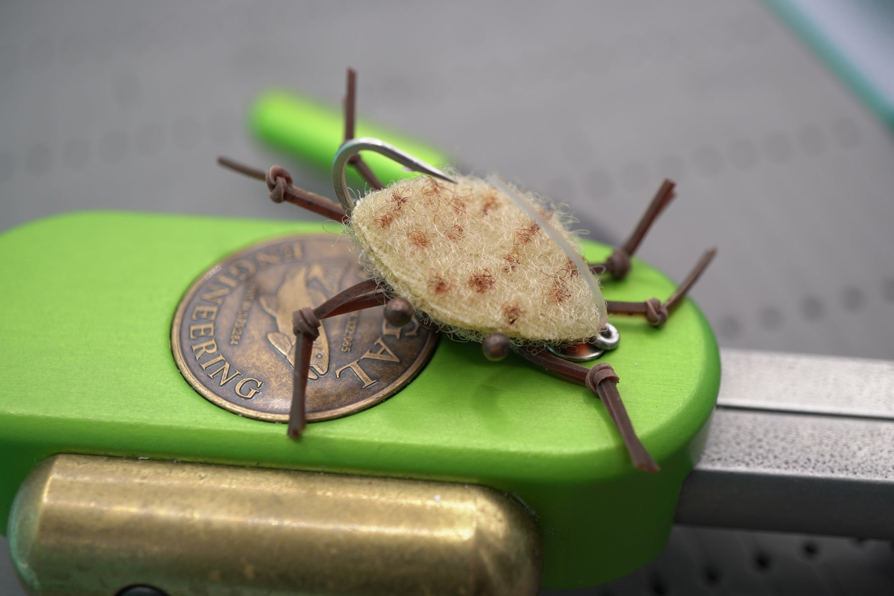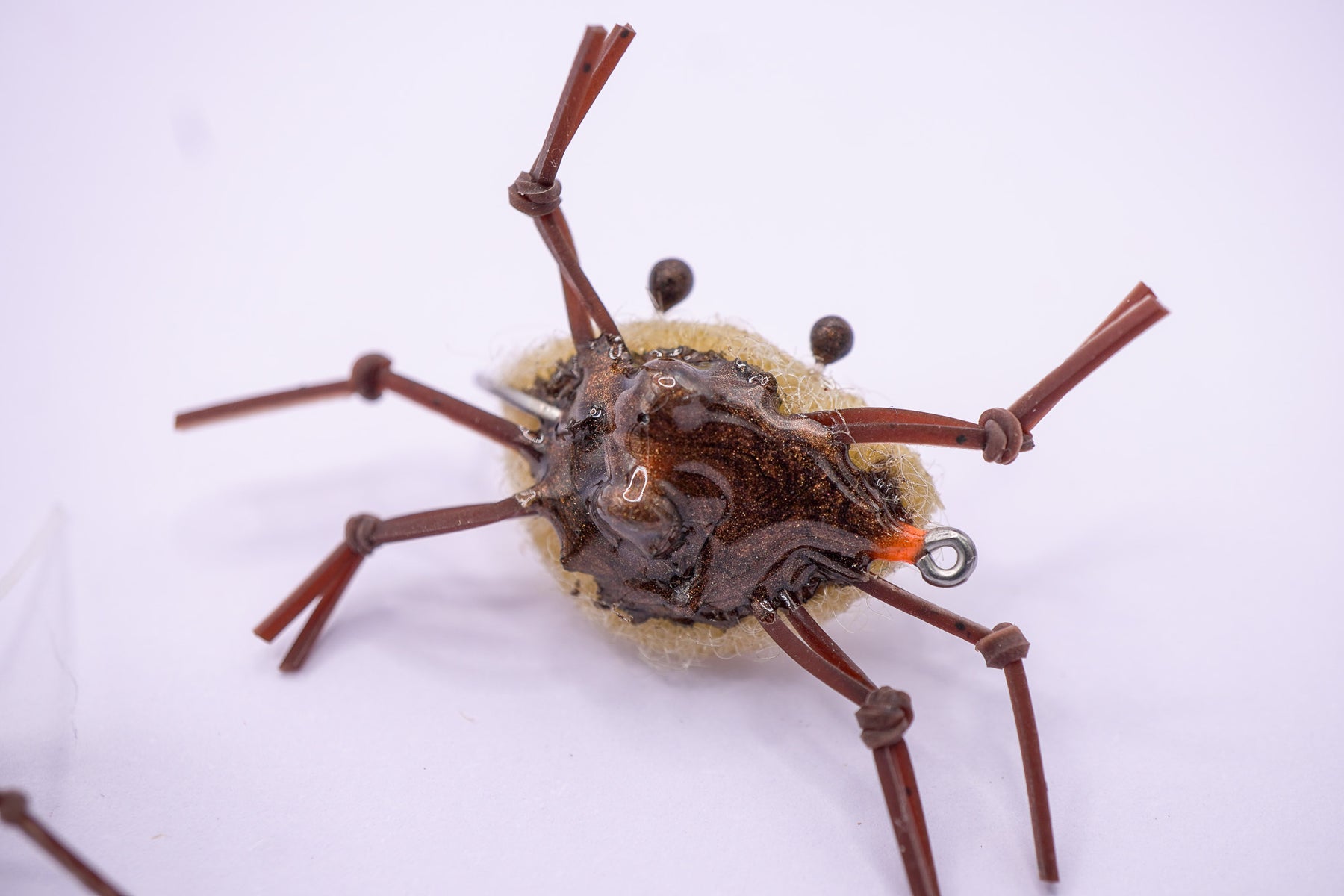 The Velcro Crab is another permit fly that can go anywhere and match what the permit are keyed in on. The light transparent velcro carapace and contrasting flat rubber legs give a perfect fleeing crab profile. The matching epoxy belly add extra weight to get this fly down and fight current if the permit are a little deeper.