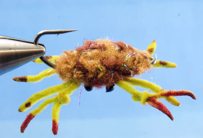 We wanted to design a crab that could out-fish the already proven Flexo crab patterns that are all the rage these days. By blending different colors of a Guard Hair Chenille from Semperfli, we get a perfectly colored body that absorbs light very naturally and adds to the flies attractiveness when visibility is low.