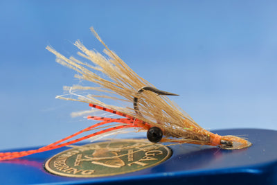 A UV-coated orange pearlescent under body folds over the rear of the hook to create a realistic spawning appearance. This shrimp casts easily and lands lightly.